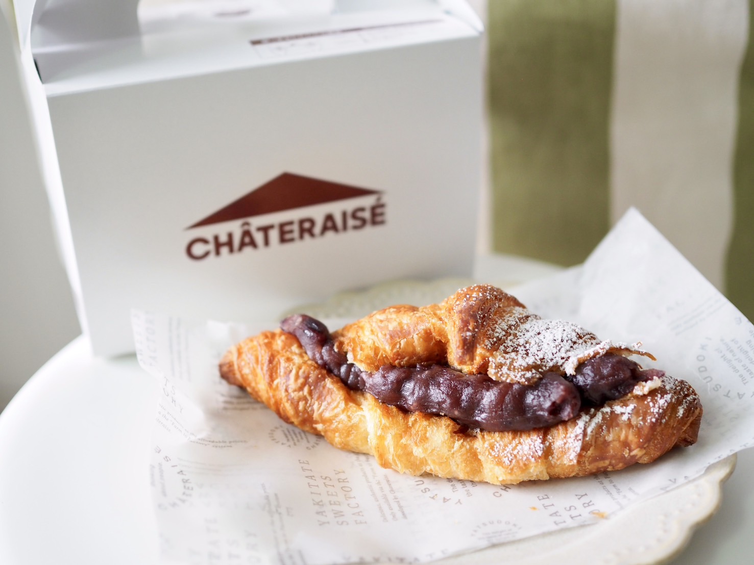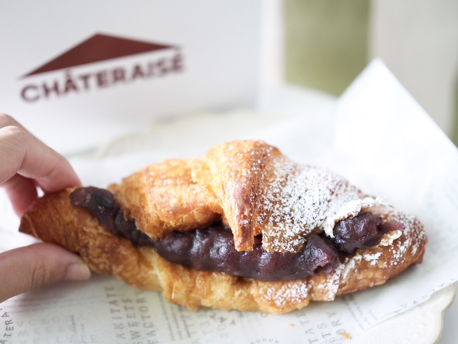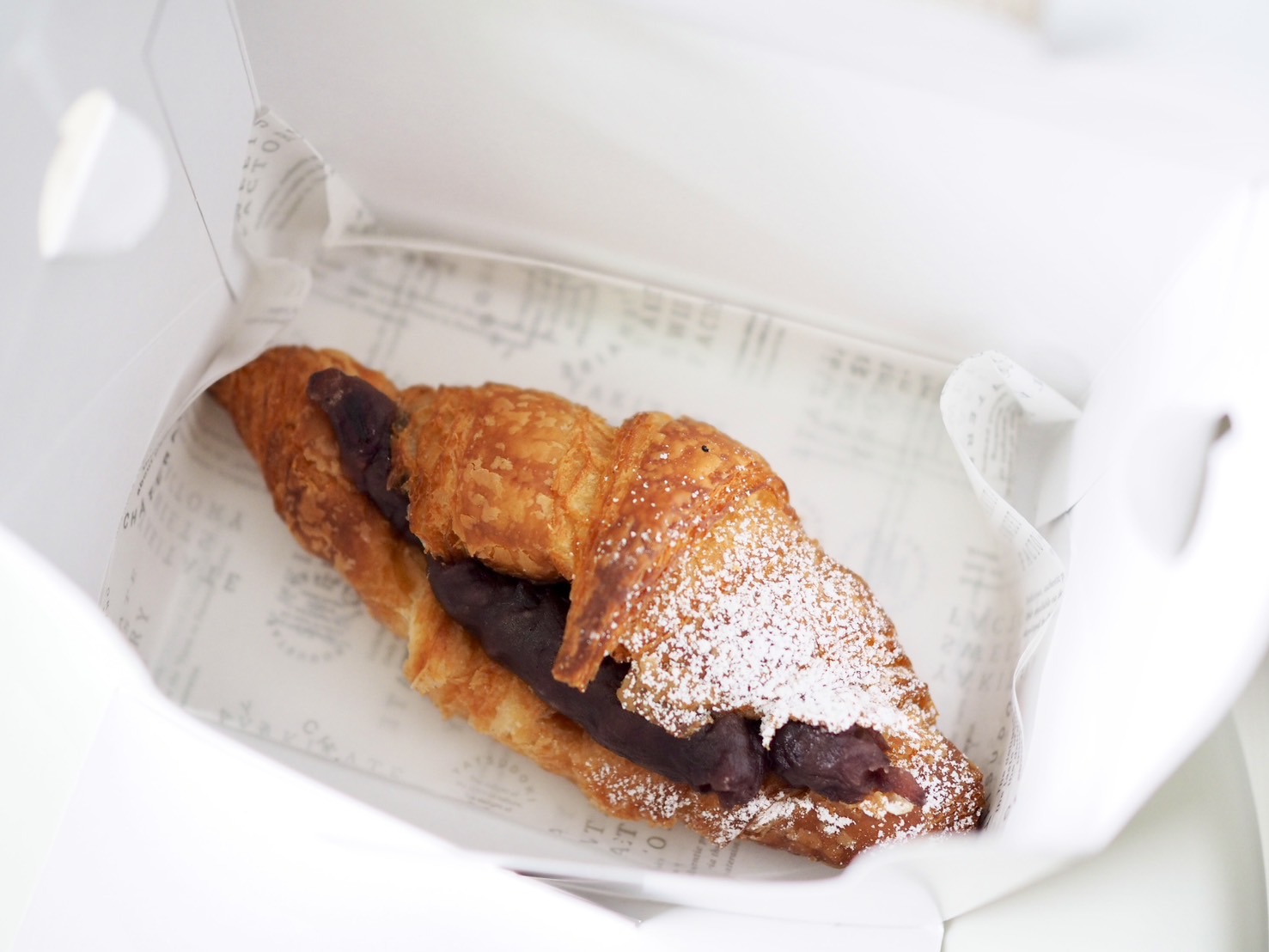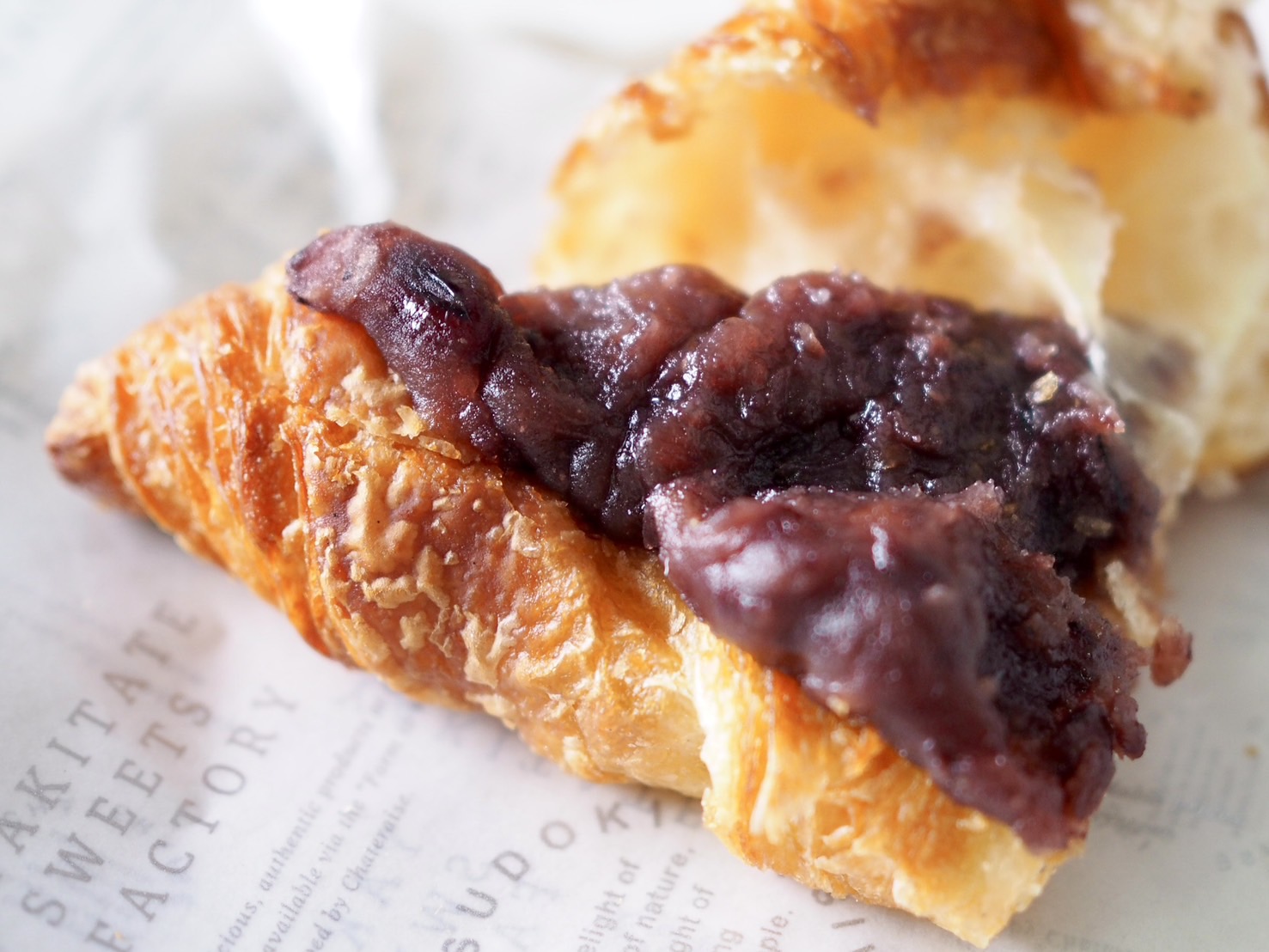表面はパリパリ、中はしっとりとした食感の発酵バターがじゅわっと香るクロワッサンで自家製つぶ餡をはさみました。